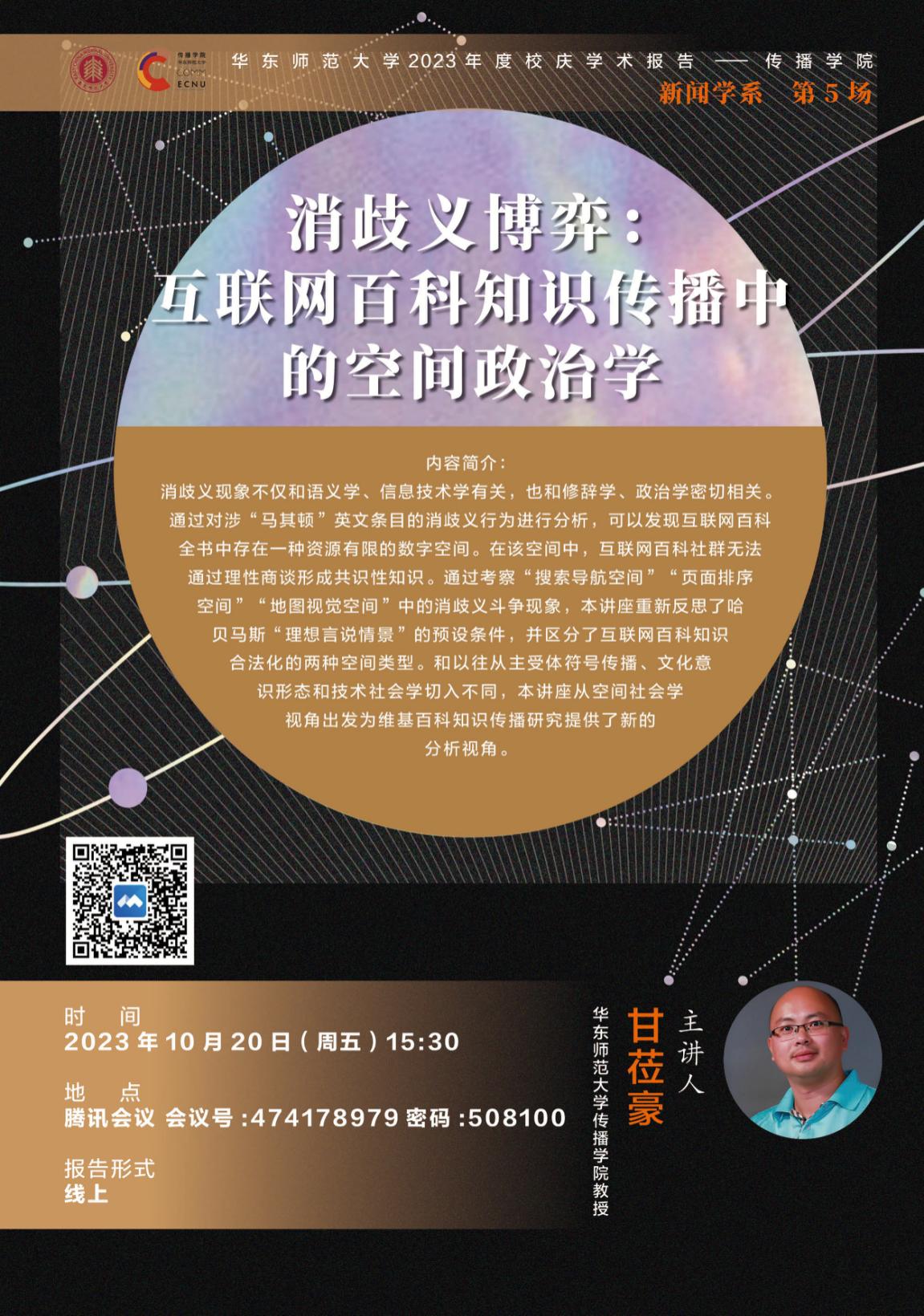 校庆学术报告会 | 甘莅豪:消歧义博弈:互联网百科知识传播中的空间政治学