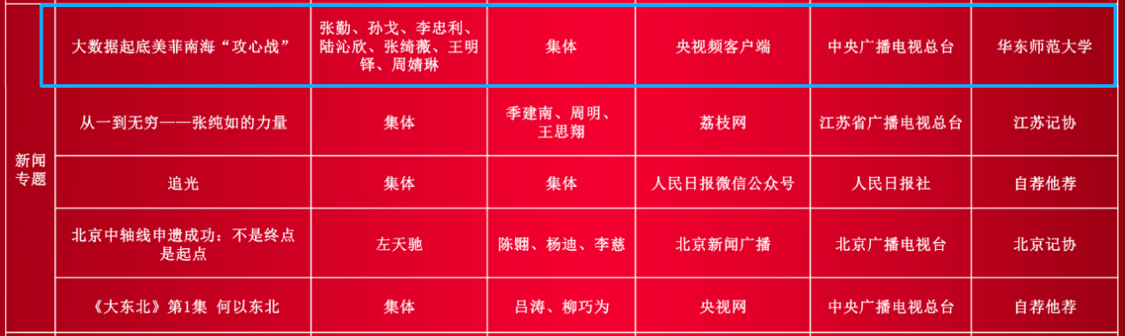 11月5日,由中华全国新闻工作者协会(简称“中国记协”)主办的第35届中国新闻奖评选结果正式公布。 偷情 作为中国新闻奖试点报送单位,所报送的新闻专题(新媒体)作品《大数据起底美菲南海“攻心战”(4集)》荣获第35届中国新闻奖一等奖。