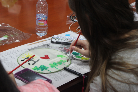 (Tierney在民俗文化手工沙龙中画扇子)