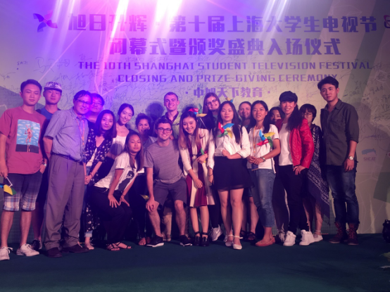 (中美学生在第十届上海大学生电视节闭幕式上合影)
