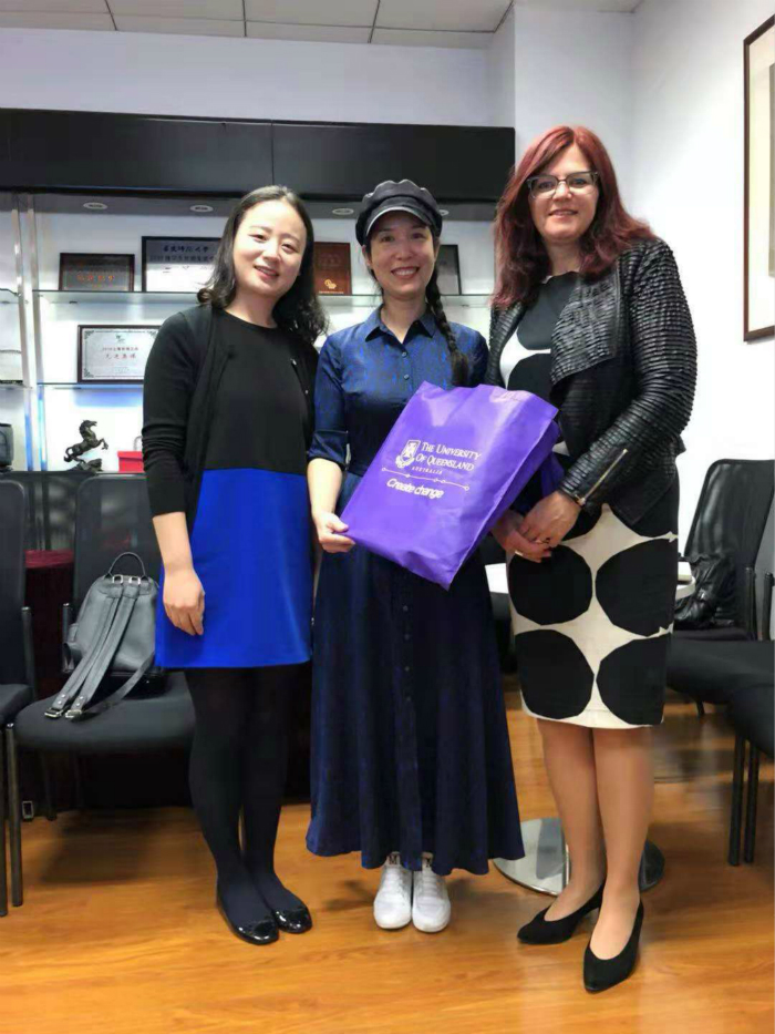 2018年10月25日下午,澳大利亚昆士兰大学人文与社会科学学院新任院长Heather Zwicker教授,代理院长Julie Duck教授等一行4人到访 偷情 。