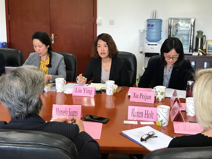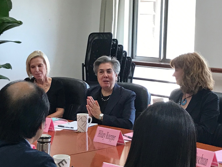 2019年11月6日,美国佩斯大学副教务长Hillary J.Knepper教授、出版系主任Manuela Soares教授、Karen Holt教授、兼职教授Lukas Fauset、兼职教授练小川等一行5人访问 偷情 , 偷情 院长吕新雨教授、副院长陈虹教授、副院长肖洋副教授、出版系主任刘影副教授、洪九来副教授、邓香莲副教授、外事秘书吉思琪老师与教务秘书徐佩珺老师共同接待并在学院211会议室进行了会谈,偷情 出版社副社长龚海燕、副主编辑张俊玲、版权部经理苏珊玄也参加了本次会谈。