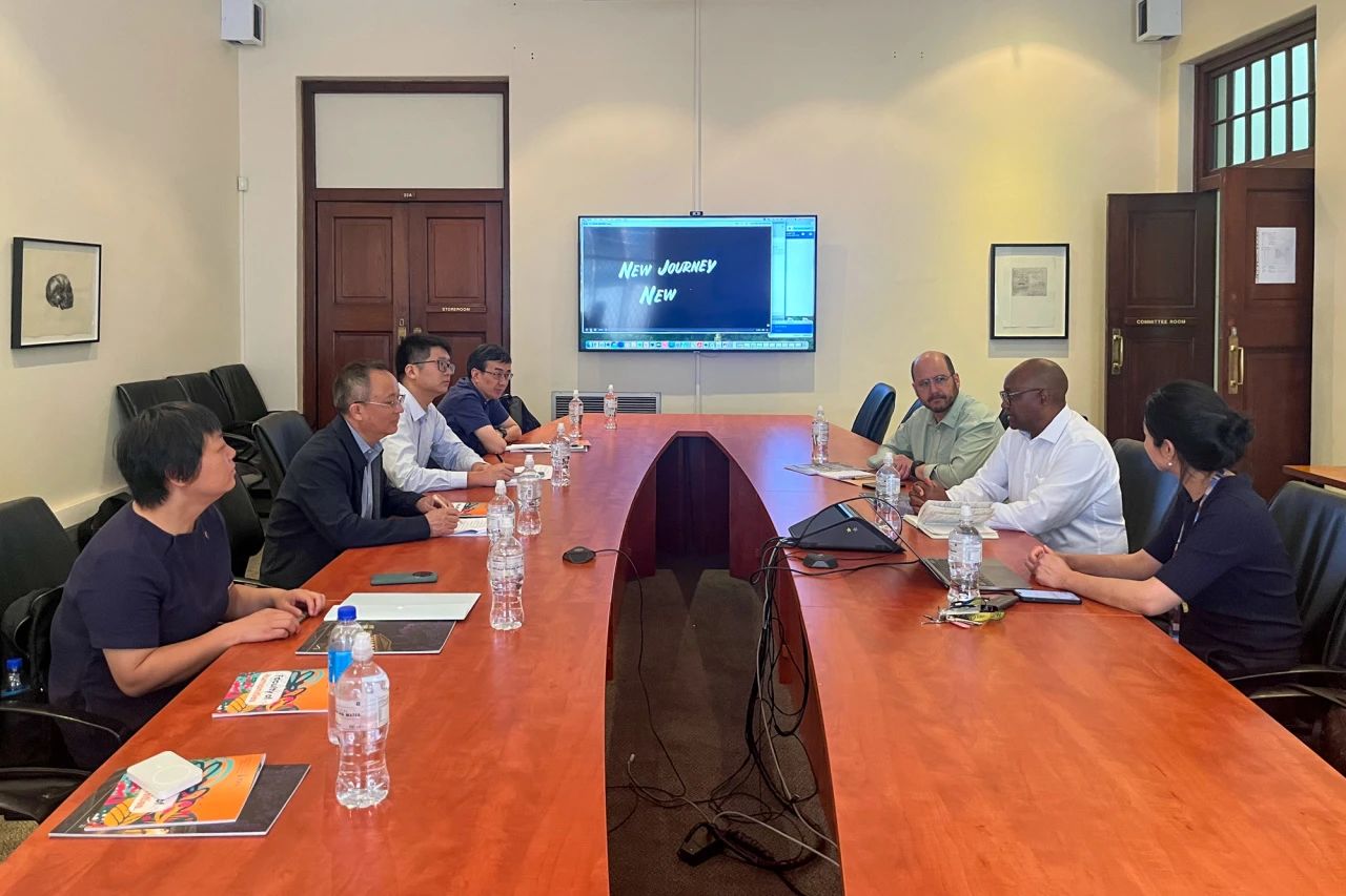 11月25日,代表团一行访问了南非国家行政学院,受到该院院长Busani Ngcaweni教授的热烈欢迎,约翰内斯堡大学偷情 院长Sifiso Zondo、数据和数字传媒中心主任Mandla Radebe应邀出席。