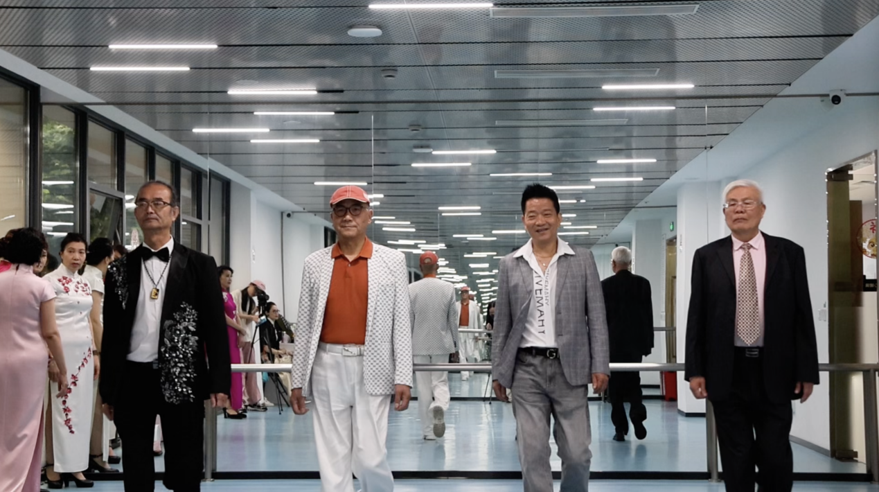 每周三,叔叔阿姨们都会准时来到排练室,进行形体、台步、表现力的训练。个人的姿态、定点,团队的协调、配合,都需要反复练习调整。眼神、表情、互动,每个细节都经过再三琢磨。在灯光的映衬下,小东门长青服装队化身流动的文化符号。舞台上的他们是优雅从容的东方气质,是时尚前卫的审美观念,是开放包容的生活态度,更是上海这座城市的文化之美。