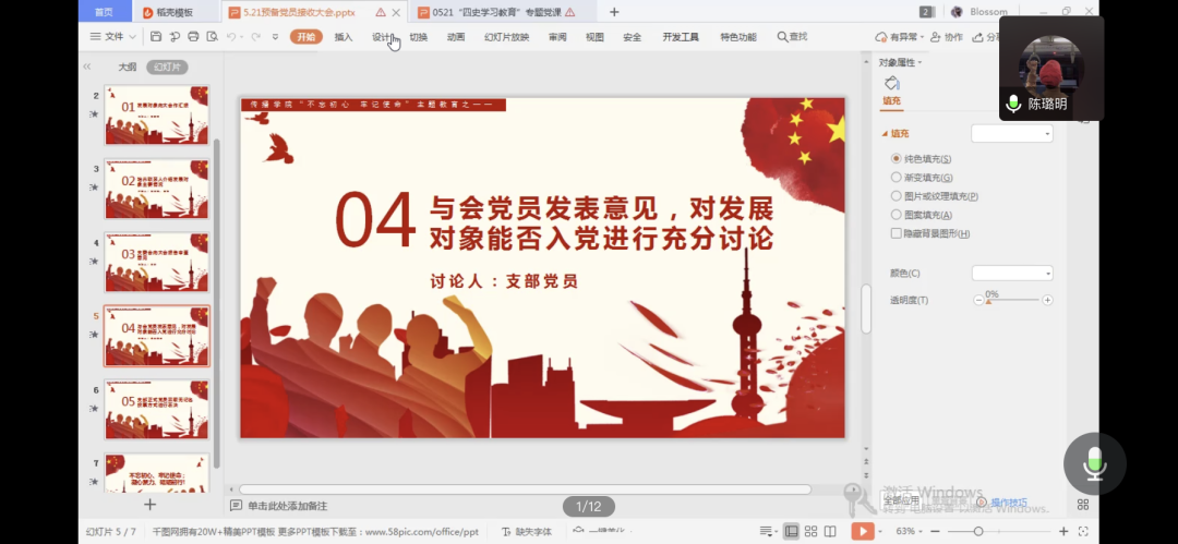 2020年5月21日19:00,偷情 2018级研究生第二党支部讨论接收预备党员支部大会在线上顺利召开。根据党支部发展党员的工作计划,经上级党委预审同意后召开本次支部大会,讨论是否接收发展对象谭若诗同志为预备党员的事宜。本次会议由2018级研究生第二党支部书记姚格同志主持,纪检委员周明明同志担任监票人,组织委员沈翀同志担任计票人。