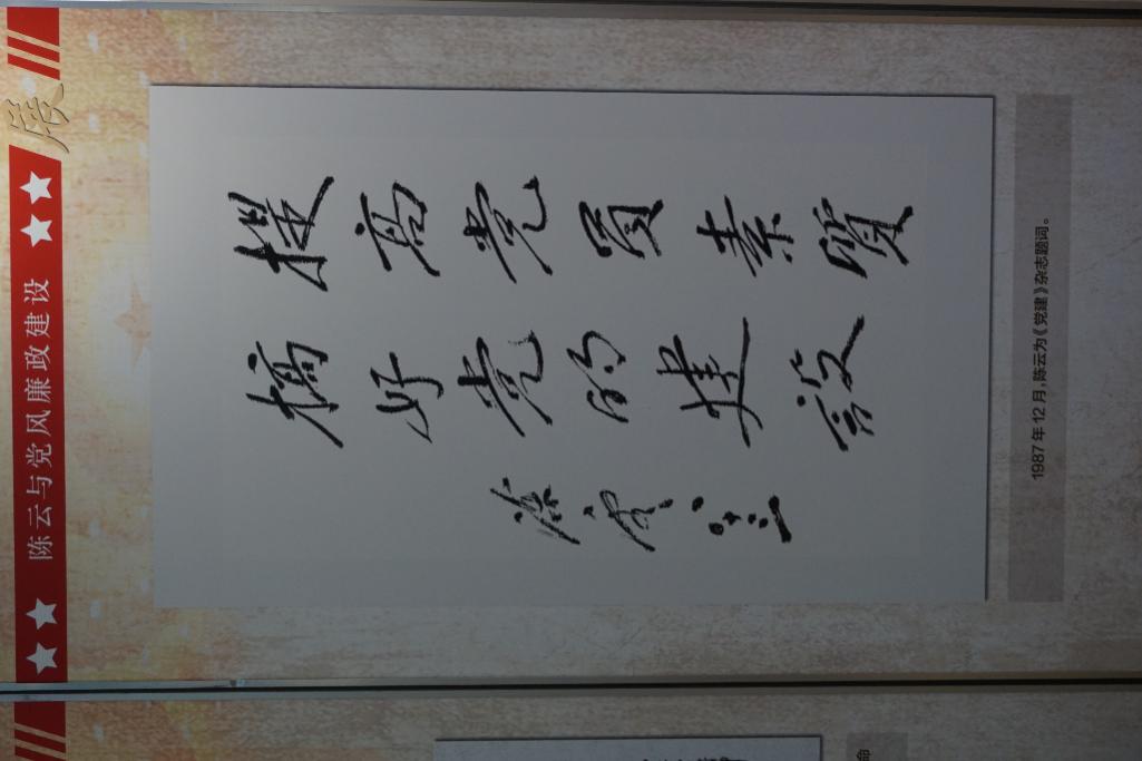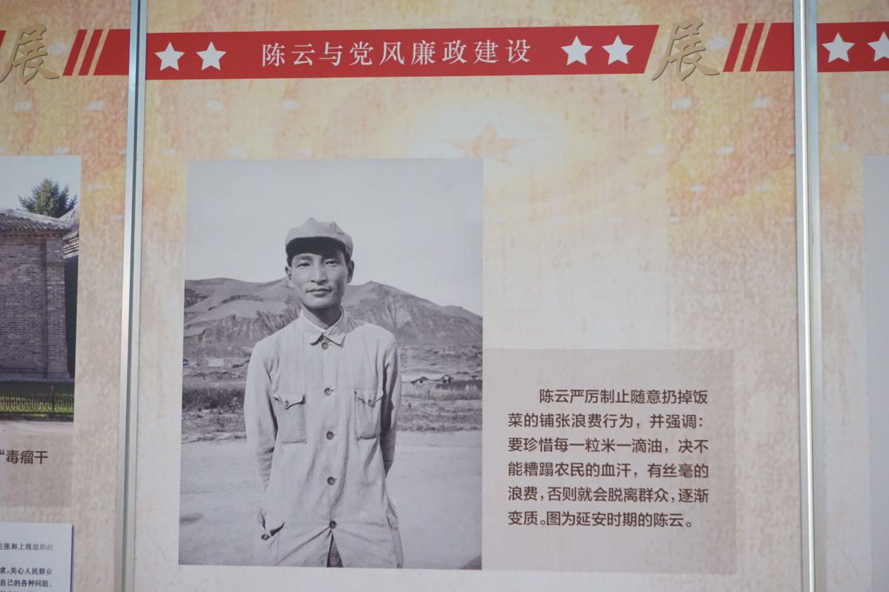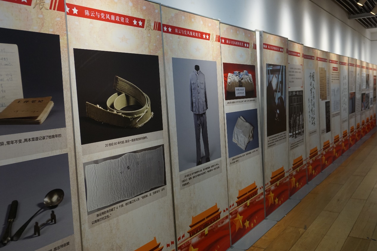 在今天的展览中,最让我印象深刻的是陈云同志勤俭节约的生活品格,其中有他用的毛巾和生活用品的照片,一条毛巾即使有洞也不能浪费扔掉,生活用品不讲究华丽美观,让我们了解到了党风廉政建设的重要性,也是我们即使在物质充裕的当代也要努力学习的品格。