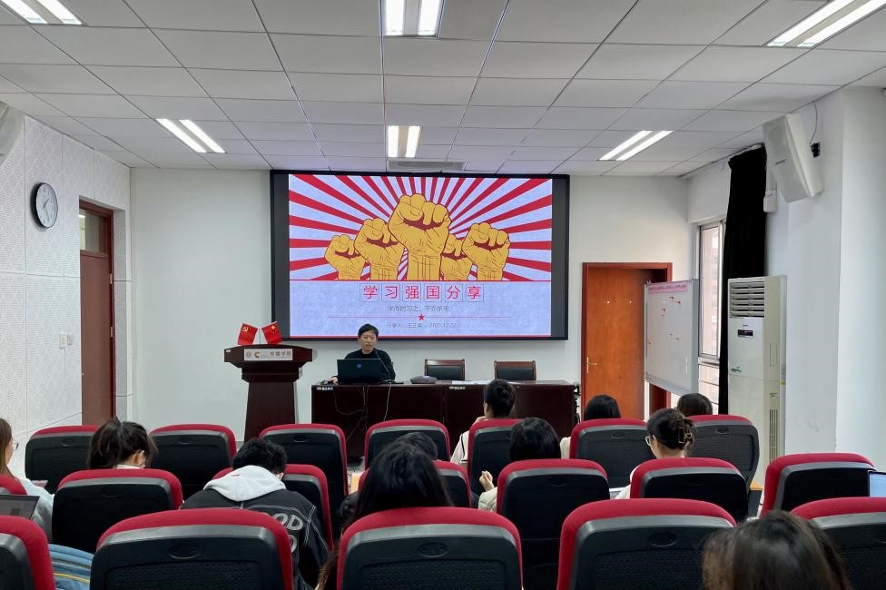 会上,支部书记王正梁针对近期“学习强国”平台学习情况和党员同学对于平台使用的困惑,向支部党员分享了“学习强国”平台高效学习的经验。在对“学习强国”平台简单介绍后,他通过视听学习、考核答题、订阅分享等内容,分模块向党员同志进行了详细的步骤讲解。最后,他强调党员同志们应结合十九届六中全会等时政热点,加强理论学习的自觉性,将理论学习走深走实,用实际行动奏响时代强音。