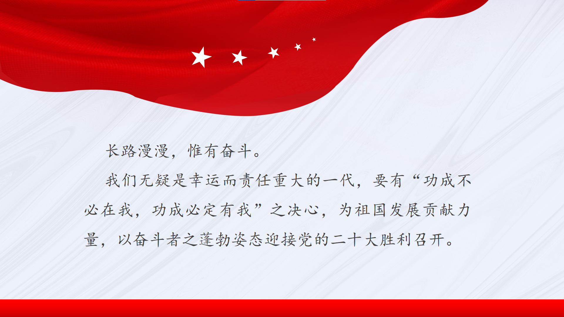 青春心向党,冲锋向前的集结号已经吹响。支部党员纷纷表示,将充分发挥党员的先锋模范作用,以实际行动彰显学生党员的责任与担当,践行当代青年“强国有我,请党放心”的青春誓言,以奋斗者之蓬勃姿态迎接党的二十大胜利召开。