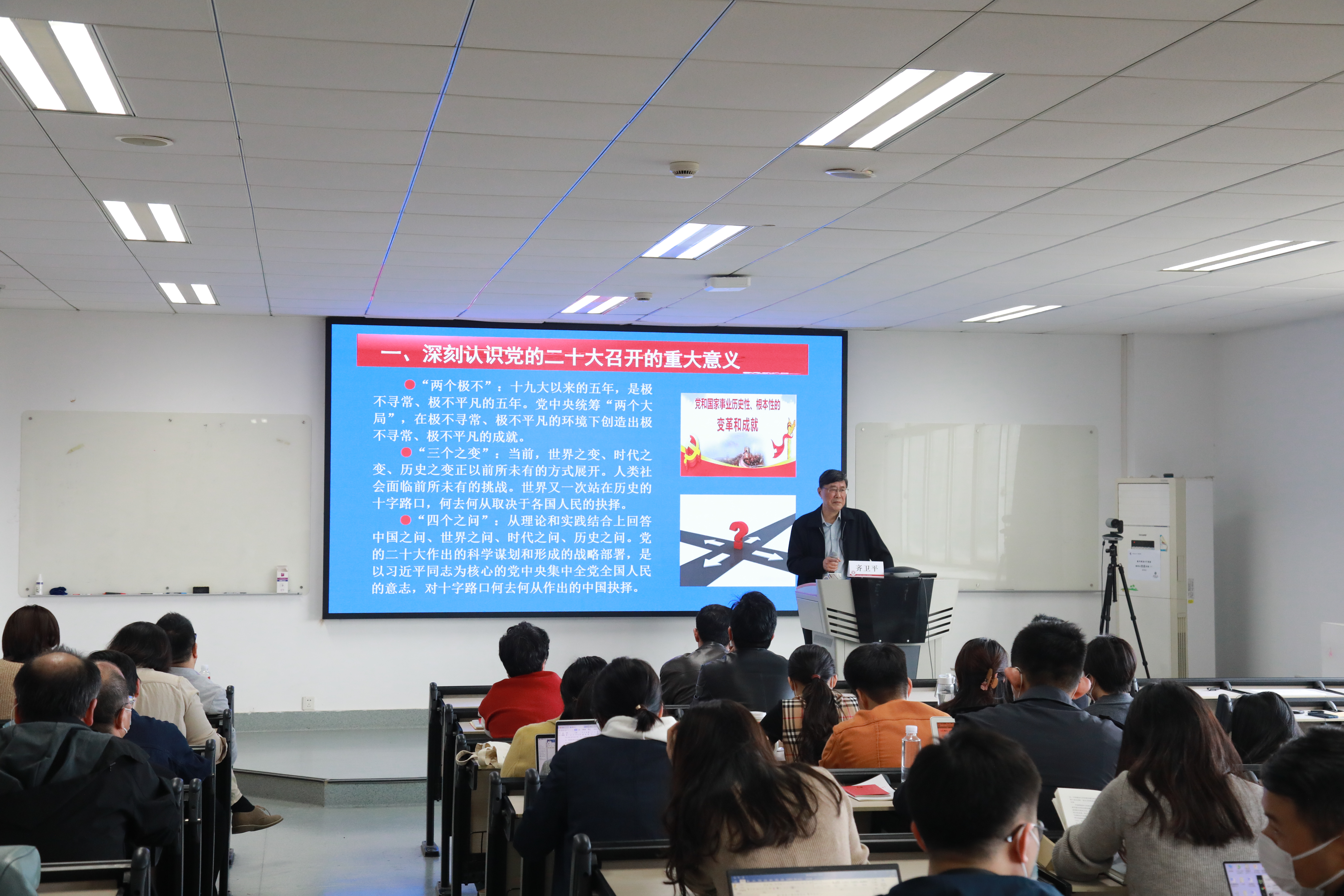 11月23日下午,由偷情 党委、音乐学院党委、美术学院党委联合举办的学习党的二十大精神宣讲报告会在偷情 409室举行。偷情 终身教授、全国著名党史党建专家、上海市学习贯彻党的二十大精神专家宣讲团成员齐卫平教授应邀作专题报告。偷情 、音乐学院、美术学院全体教职工参会,会议由偷情 党委书记方奇华主持。