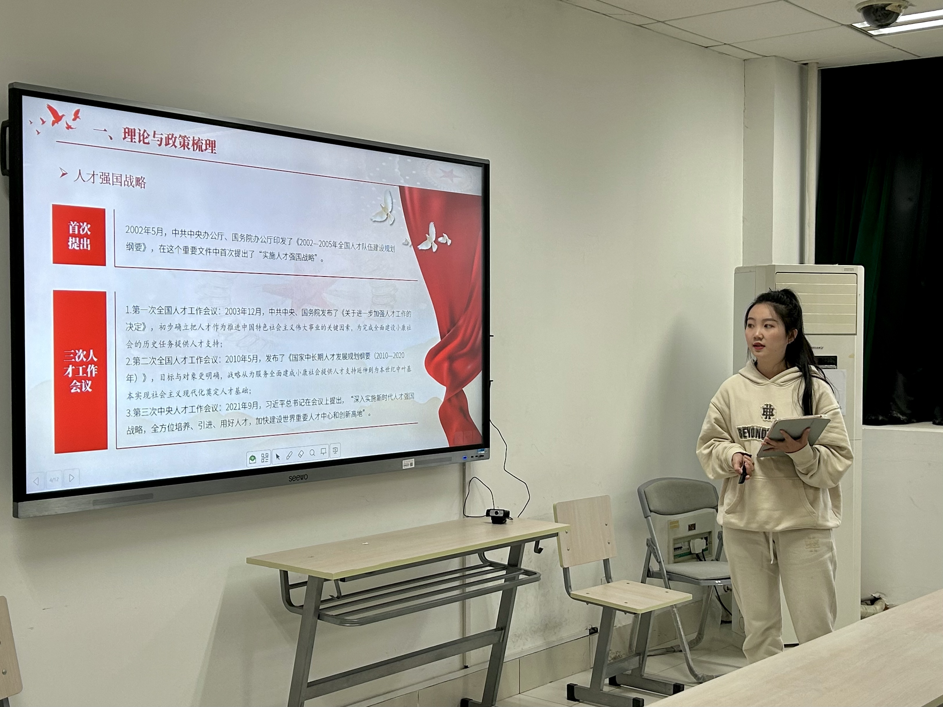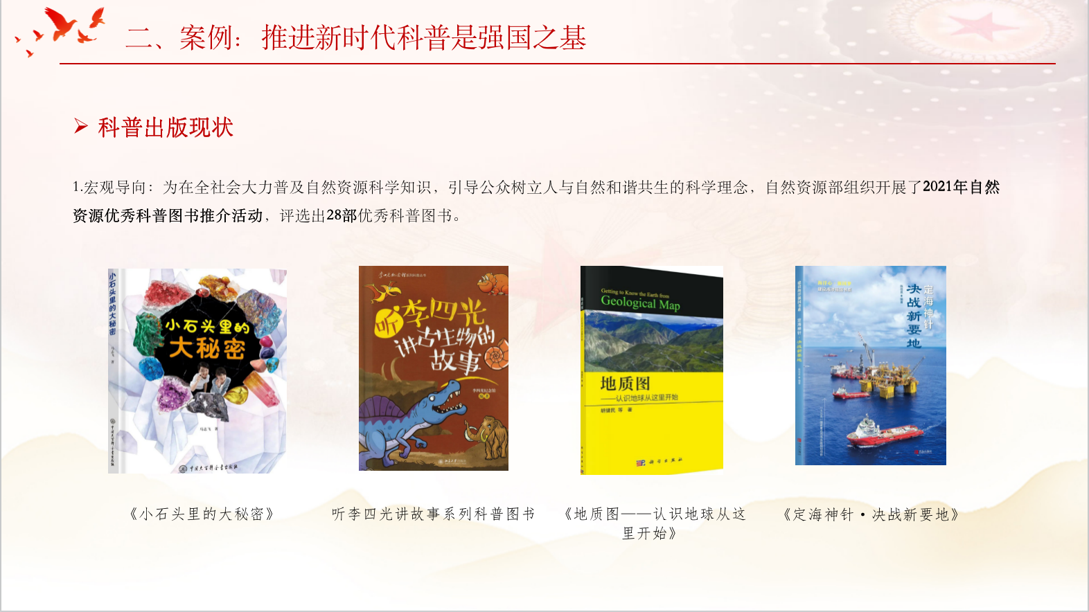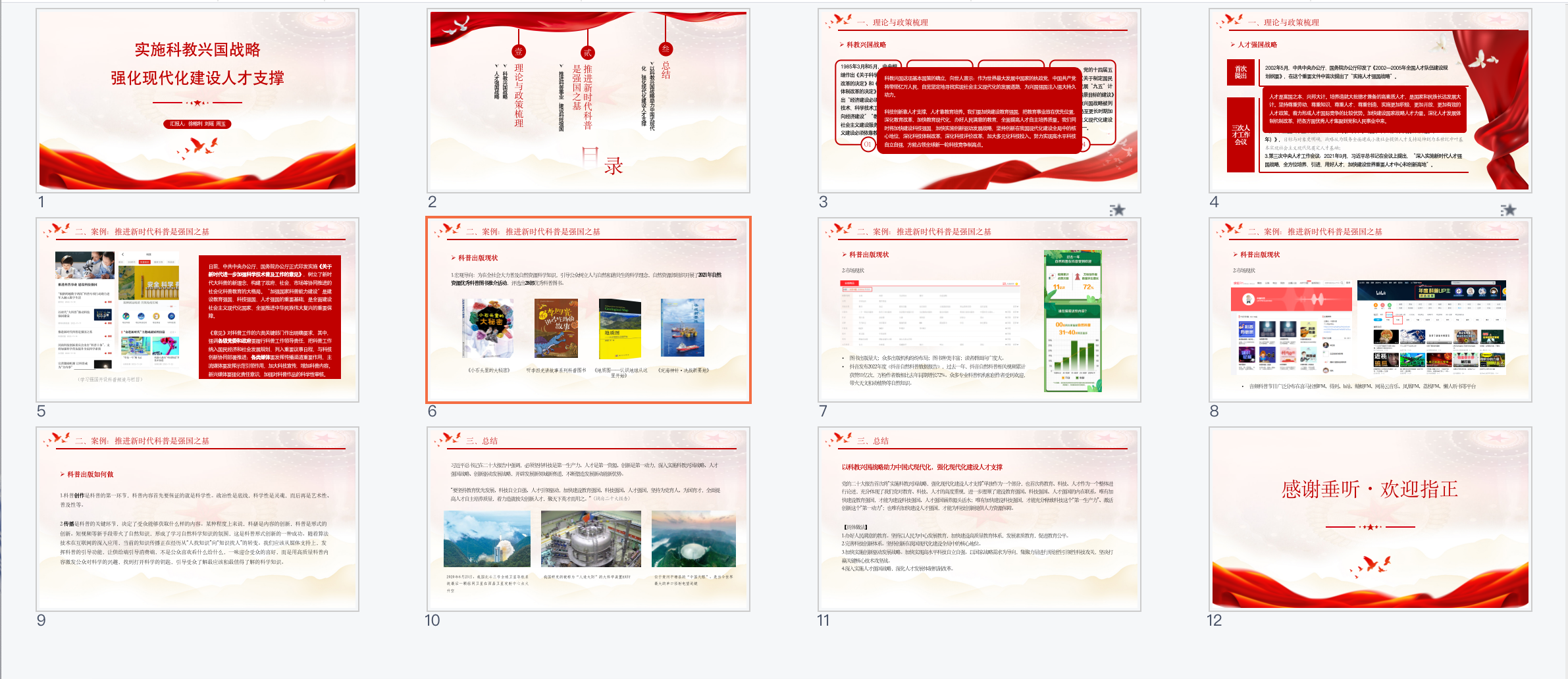 在交流分享的过程中,第五小组不仅梳理了“科教兴国”的理论政策,还将理论与所学的出版专业相结合。小组分享从科普出版的现状出发,从实践中反思不足,并作出了对于科普出版未来的展望以及总结:认为未来的科普出版要从内容和形式均做到创新,用高质量科普内容激发公众对科学的兴趣,做到了将理论知识落到实处。