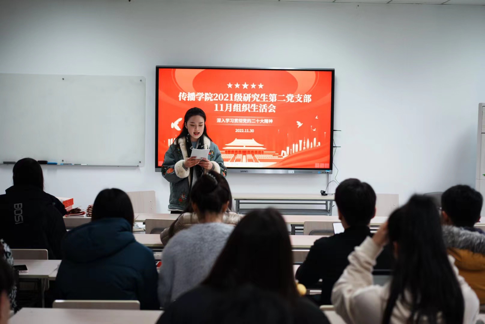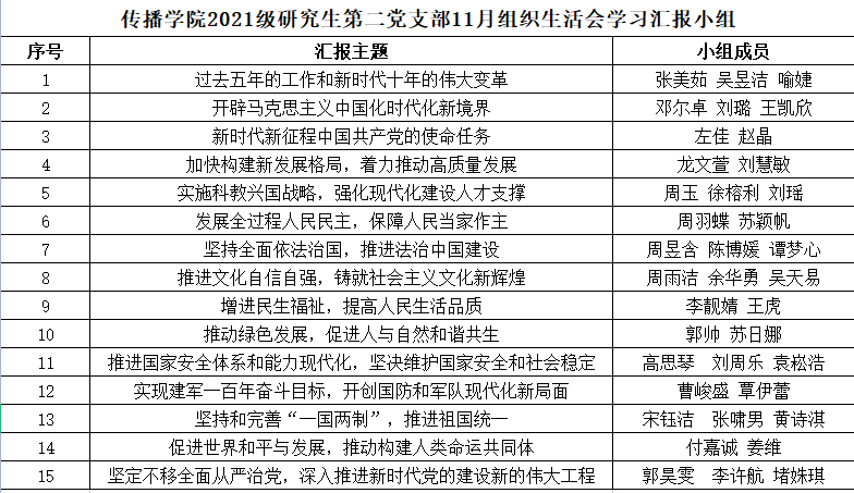 为深入学习贯彻党的二十大精神,在深学笃行中汇聚青年力量,2022年11月30日15时,偷情 2021级研究生第二党支部召开十一月组织生活会。偷情 2021级研究生第二党支部党员、发展对象与入党积极分子共同参会。会议由2021级研究生第二党支部副书记周雨洁主持。