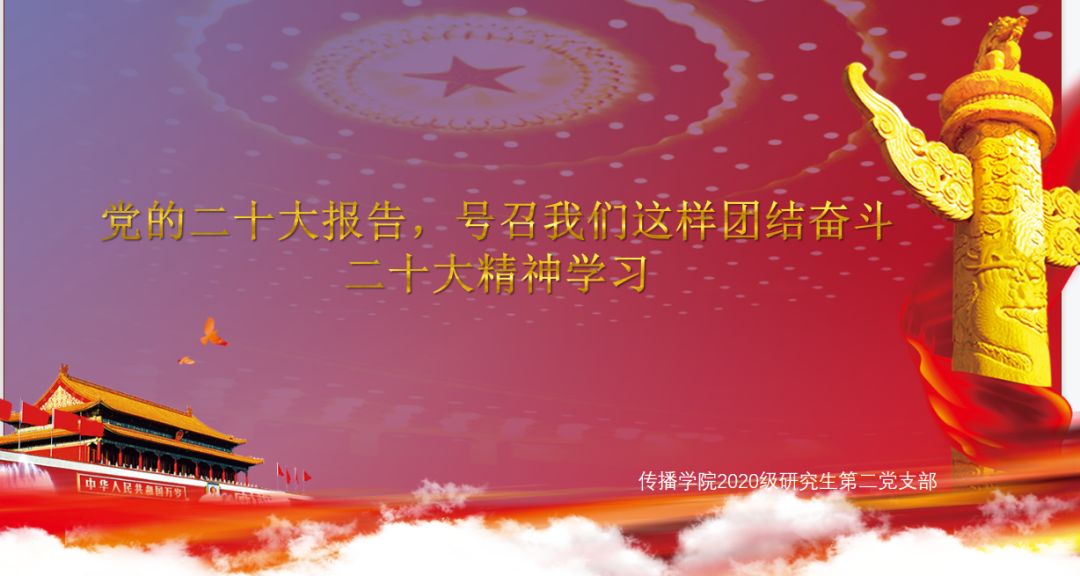2022年12月13日中午12:00,偷情 2020级研究生第二党支部组织支部成员于线上开展了“党的二十大报告,号召我们这样团结奋斗”主题党日活动,对党的二十大报告精神进行了集中学习与感悟分享。