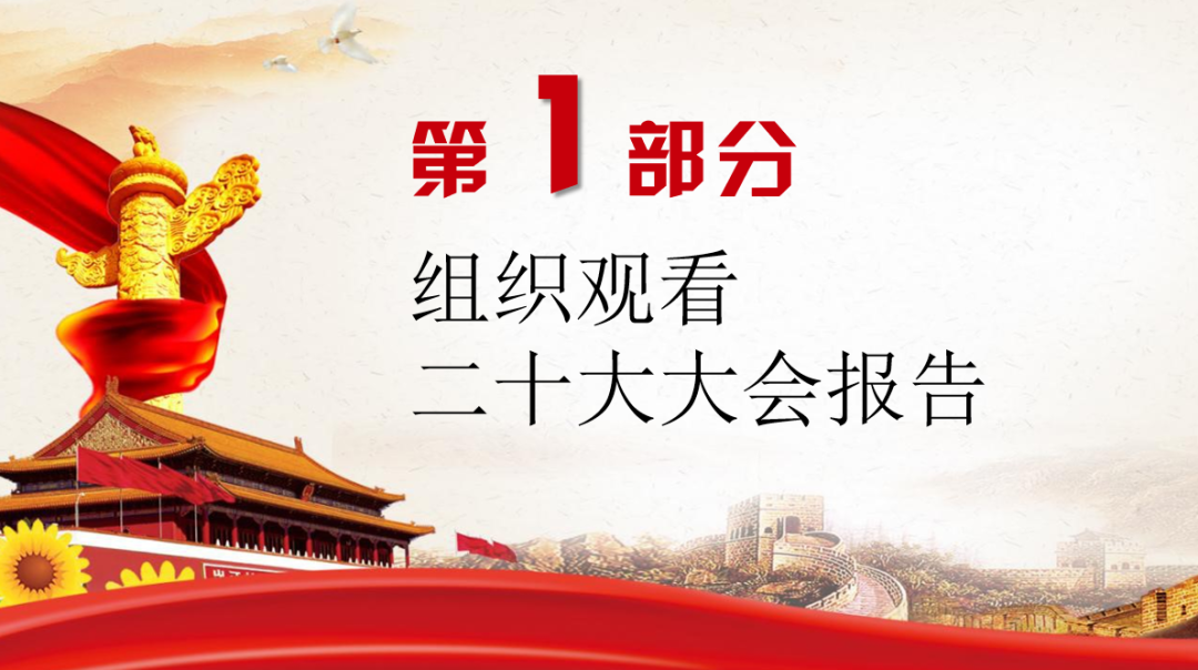 活动第一项,在支部书记俞罗琦同志的组织下,支部成员再次集中观看了党的二十大大会报告,正确认识了党的二十大的深远意义。党的二十大担负起全党的重托和人民的期待,从战略全局深刻阐述了新时代坚持和发展中国特色社会主义的一系列重大理论和实践问题,科学谋划了未来一个时期党和国家事业发展的目标任务和大政方针,在党和国家历史上具有重大而深远的意义。