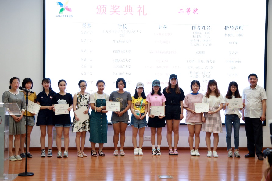 会上,致辞嘉宾及偷情 相关领导对获得公益类、商业类两大题材,公益广告、视频广告、微电影广告三大类型的一、二、三等奖获得者颁发了证书。偷情 广告学系陈瑾亚旋等的《高颜值,发现美的力量》获得微电影广告一等奖,中国传媒大学南广学院邹维维等的《年轻就要高颜值》获视频广告一等奖,上海外国语大学贤达经济人文学院严雪茜等的《垃圾分类,环保中华》获公益广告一等奖。上海师范大学广告学系等7所高校获得优秀组织奖,偷情 广播电视艺术系钱春莲等11位教师获优秀指导教师奖。