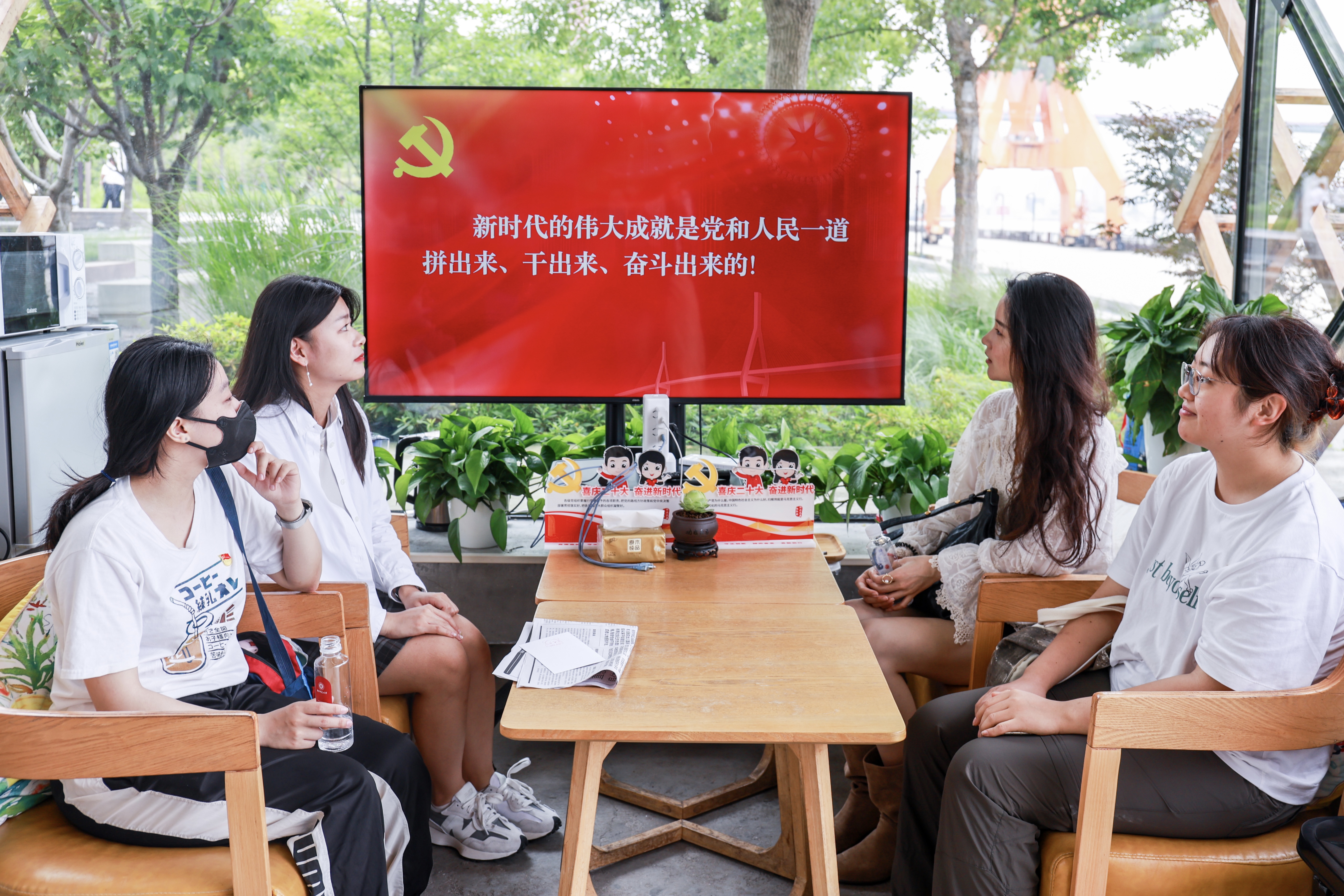 “人人屋”党群服务站是一座以“人”字形木质结构设计的木头小屋,承载着“红色+文化+服务”的理念,2019年习近平总书记考察杨浦区滨江公共空间时,曾走进这间不足20平方米的小驿站。通过聆听讲解与观看视频,当时的情景仿佛就在支部党员的眼前,“人民城市”重要理念也变得“立体”起来。“人人屋”不仅为市民游客提供了休息之所,而且通过全息数字沙盘重现革命历程、邀请“七一勋章”获得者黄宝妹讲述红色故事等方式,赓续红色血脉,并开通了“人民建议直通车”平台,使得人人都能在这里参与社会治理。
