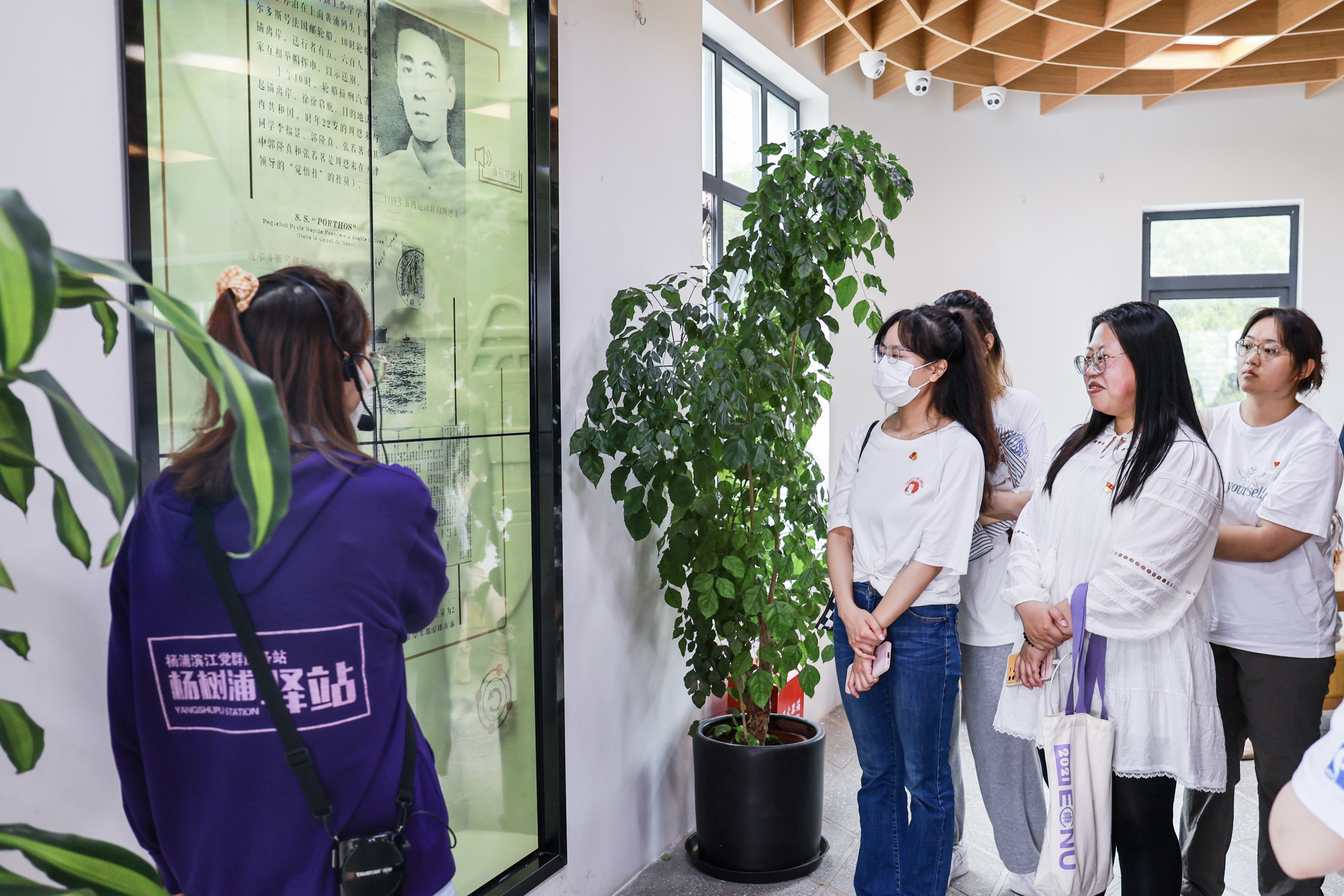 讲解员带领支部党员参观了位于秦皇岛路码头二层的党群服务站。通过滨江VR全景的多媒体互动手段,党员们深切体会到百年杨浦滨江从开埠到成为改革开放发展前沿,再到党的十八大以来发展成为“人民水岸”的巨变,从昔日“工业锈带”到如今“生活秀带”的更新再造。