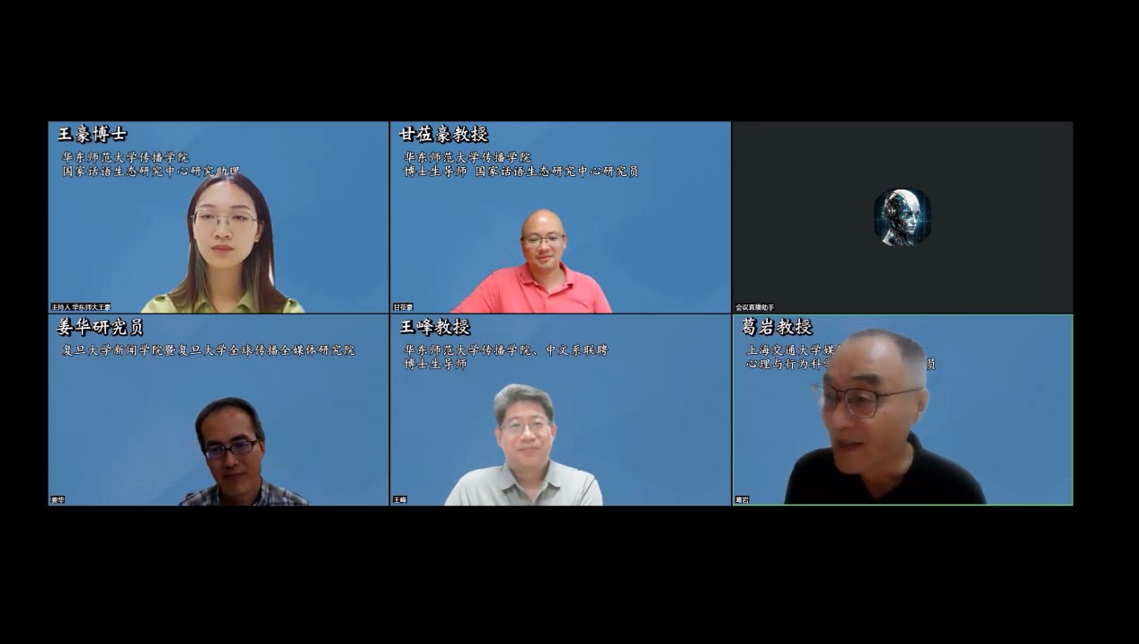 2023年6月28日19:00, 偷情 学术主题对谈“人工智能需要灵魂吗?”在线上召开,上海交通大学媒体与偷情 教授葛岩,复旦大学新闻学院暨复旦大学全球传播全媒体研究院研究员姜华, 偷情 院长王峰和 偷情 教授甘莅豪为此次云上对谈的嘉宾, 偷情 2022级博士生王豪担任主持人。近百位专家学者在线参与。