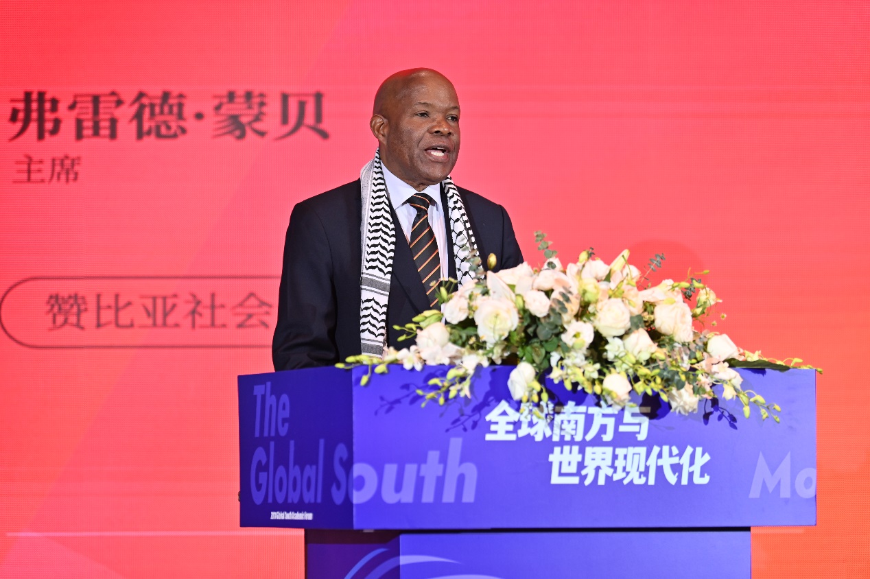 弗雷德·蒙贝指出,美国霸权干涉和殖民主义留下的人才流失等负面遗产,为中非携手推进现代化带来巨大挑战,呼吁进一步加强中非人民之间在人才交流、经济发展等方面的友好往来与务实合作,推动中非共同现代化进程。弗雷德·蒙贝同时表示,习近平主席在中非合作论坛上的主旨讲话为中非共逐现代化之梦指明了新方向和新路径,中非人民将携手努力,共同走在推动构建人类命运共同体的前列。