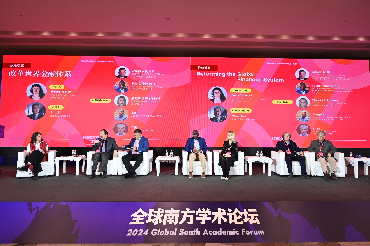 分论坛五“改革世界金融体系”由拉美人民运动拉丁美洲经济问题专家卢西娅·孔维蒂(Lucía Converti)主持,太和智库高级研究员丁一凡担任点评人,旨在面对当下美元为核心的全球货币和金融体系被武器化的现实情况,围绕当前全球货币金融体系的缺陷、改革面临的关键挑战、金砖国家在改革中的作用等议题展开讨论,探讨改革世界金融体系的可能性。