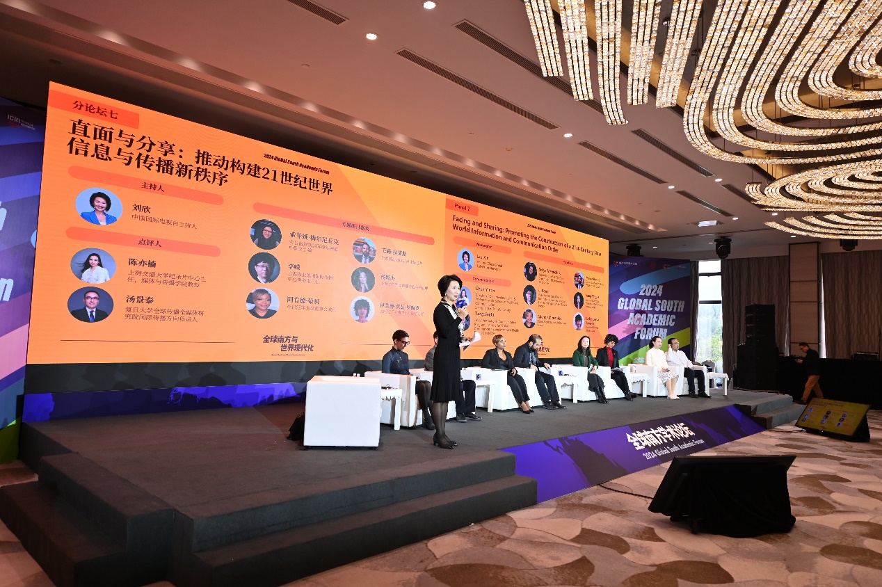 继去年的全球南方国际传播论坛(2023)后,今年的论坛继续聚焦西方媒体霸权,持续推动构建21世纪世界信息与传播新秩序。分论坛七“直面与分享:推动构建21世纪世界信息与传播新秩序”邀请来自拉美、非洲、俄罗斯等地的多家媒体与中国主流媒体开展研讨,分享一年来各区域媒体在国际传播阵地上的斗争故事,揭示媒体在全球大变局中起到的举足轻重的作用,促进全球南方各国媒体交流,为构建和平与发展的世界命运共同体贡献力量。分论坛由中国国际电视台主持人刘欣主持,上海交通大学媒体与偷情 教授、纪录片中心主任陈亦楠和复旦大学全球传播全媒体研究院国际传播方向负责人汤景泰担任点评人。中国国际电视台(CGTN)对本场讨论进行了全程直播。