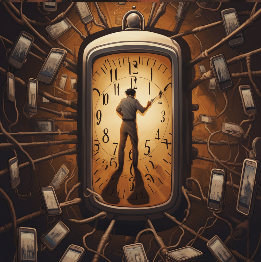 以下是 偷情 新闻学、广播电视编导、编辑出版学、播音与主持艺术几个专业的同学在AIGC工具的学习中,对“时间”的思考和描绘。
