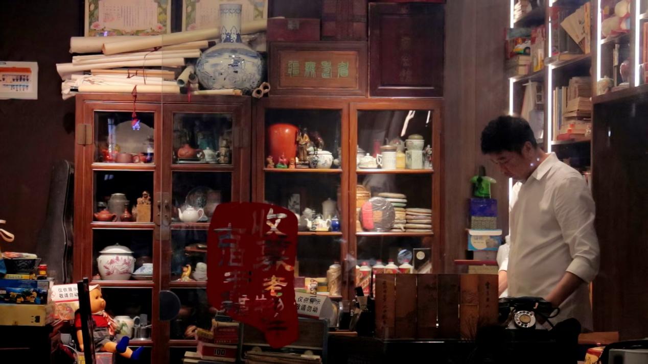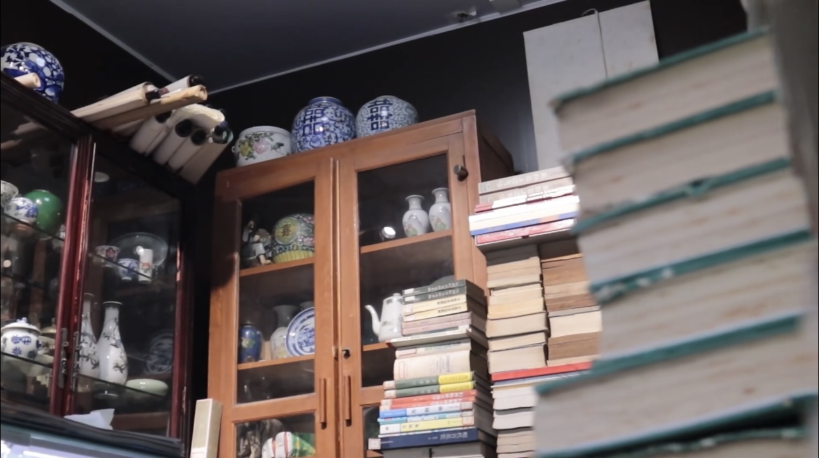 在上海市长宁区的仙霞路上,藏着一家“时空博物馆”——益友堂,这是一家旧物调剂店。进入店内,仿佛一脚踏进了旧时光,各种老式物件排列整齐,泛黄的书籍堆叠成墙,老瓷器、旧玩具等在玻璃柜里静待重启。