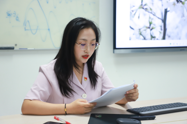 随后,郭昊雯代表支委会从党员教育、党员发展、针对2022年度民主评议会提出的不足之处整改情况以及主题教育开展情况等四方面,报告半年来党支部工作情况,通报支委会。她表示,半年来党支部各项工作有条不紊地展开,离不开各位党员的积极参与和热情奉献,进入研三,大家将面临论文、求职等多重任务,支部委员会也会在保障基础理论学习的同时,丰富活动形式,拓展组织生活内容。