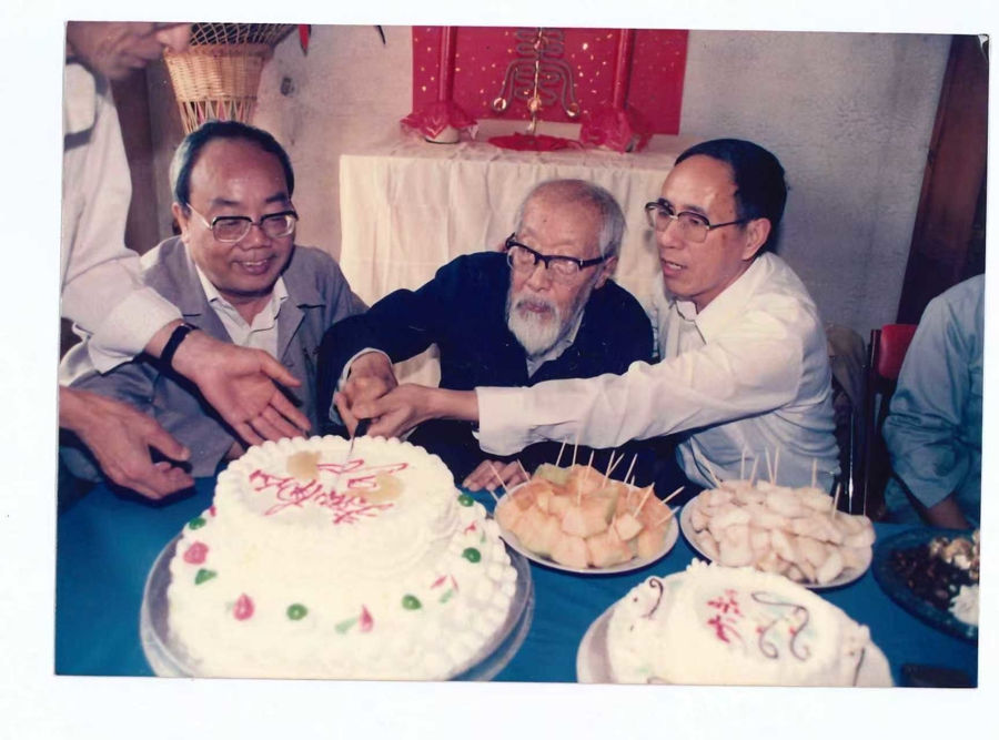 与郭豫适先生(左)一起为史存直先生(中)祝寿