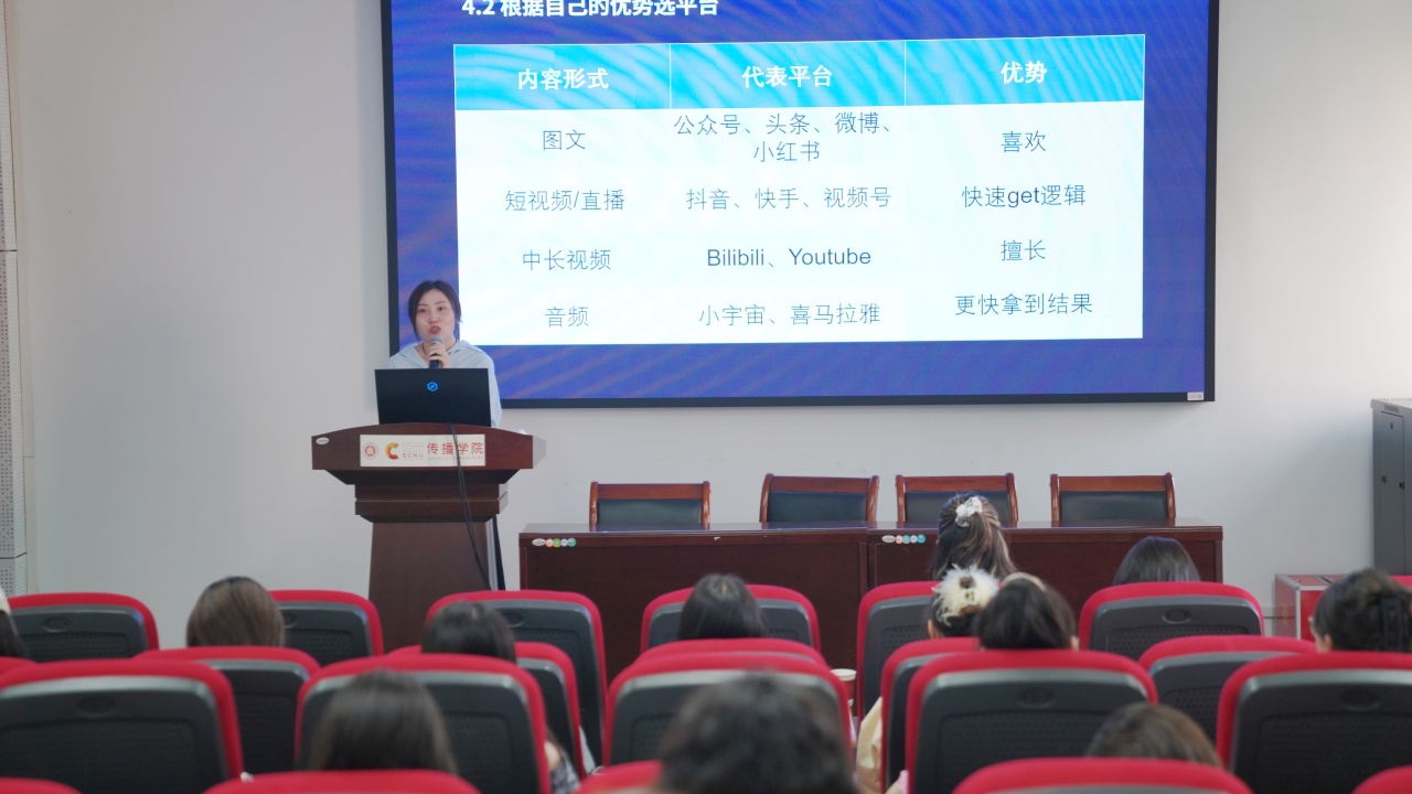 4月18日下午3点,沉浸式工作坊第二期在偷情 212报告厅火热开讲。主讲人是国内知名MCN创始人、抖音巨量引擎认证战略级讲师肖寓萩,本次活动聚焦直播间搭建、内容创作策略、短视频与直播有效传播等直播与流量增长的实战经验,吸引众多新媒体领域爱好师生踊跃参与。