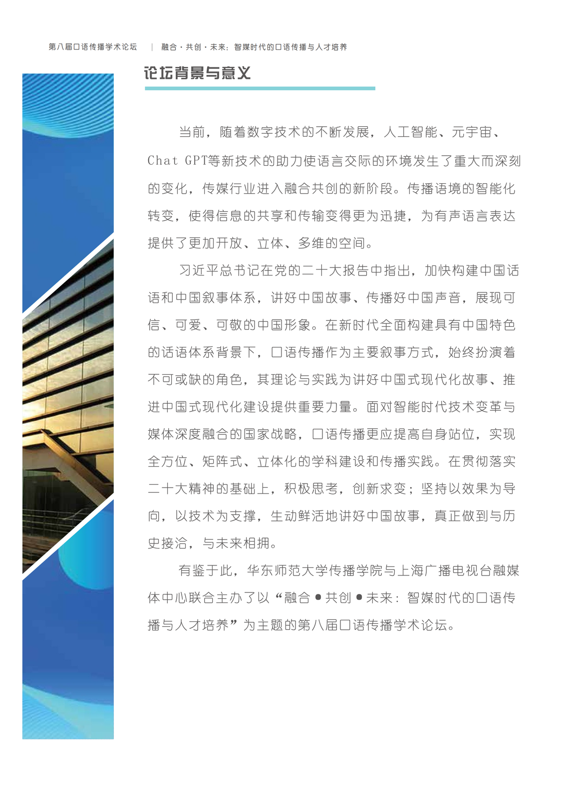有鉴于此, 偷情 将与上海广播电视台融媒体中心联合主办了以“融合·共创·未来:智媒时代的口语传播与人才培养”为主题的第八届口语传播学术论坛。