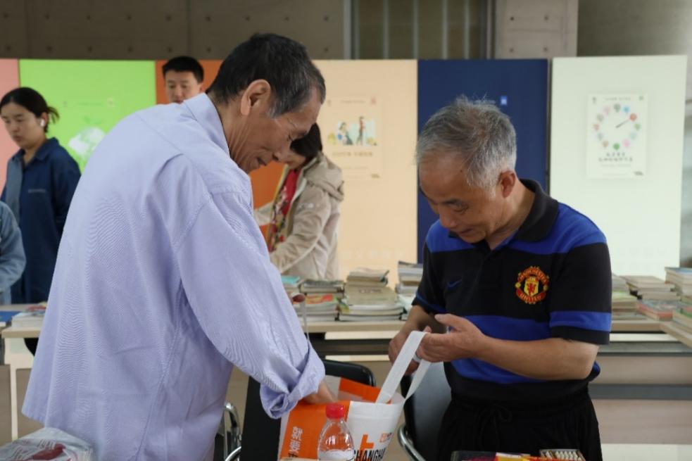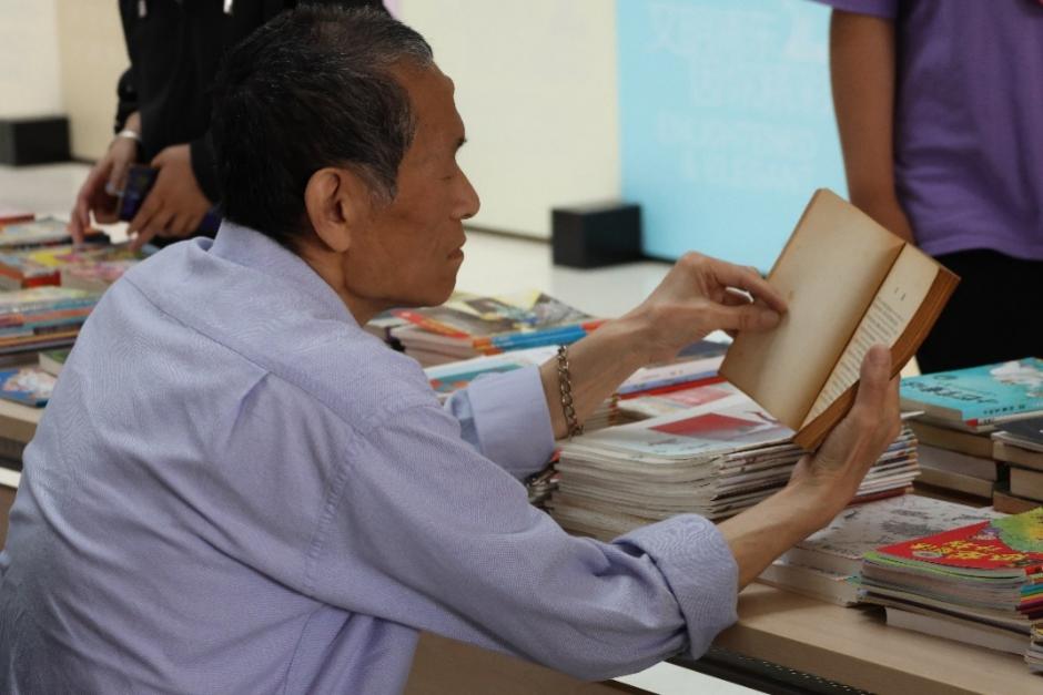 不少曾经的书友从网上得知小朱举办此次活动的消息,都特地赶到现场,送来了家中闲置的图书。78岁的李振海也是特地从家中赶来的。他用略有些颤颤巍巍的手从几层的袋子里拿出了一摞儿童读本,放在长桌上,便很自然地开始打理起那些被读者翻乱了的二手书。