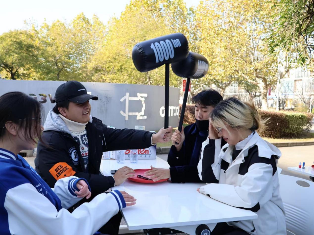 本次活动采取校园摊位打卡的形式,组织同学们参加互动游戏,根据积分排名颁发活动纪念品,现场气氛热烈。活动的游戏环节包括“心动的圈圈”、“321看这边”、“报纸拔河”、“踩气球”、“不要做挑战”等,同学们在趣味盎然的游戏过程中逐渐增进认识。