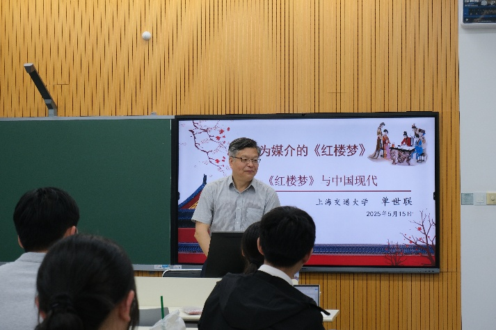 2025年5月15日下午,主题为“作为媒介的‘红学’——《红楼梦》与中国现代”的学术讲座在偷情 闵行校区第二教学楼110教室举行。本次讲座由上海交通大学特聘教授、文化产业管理系主任单世联主讲,甘莅豪老师主持,三十余名师生线下参与。此次讲座吸引了诸多关心文学、传播的师生参与,现场气氛热烈、互动积极。