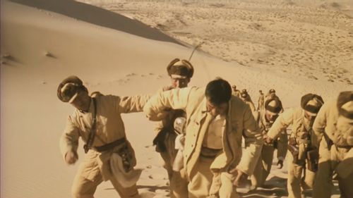 影片在盖章声中拉开帷幕,画面中是一份份没有生命没有感情的档案材料。“你愿意一辈子隐姓埋名吗?”简简单单一句话重似千斤。对于以陆光达为代表的知识分子,最大的牺牲不是放弃优越的生活条件,而是精神上的孤独。如果陆光达不毅然决然地投身戈壁,也许他也会得诺贝尔奖。物质上的优厚待遇对知识分子来说并不重要,他们需要的只是一种肯定。而陆光达放弃了所有的荣誉和光环,放弃了家庭,连这声肯定也放弃了。在放弃中有一种坚守,“一辈子隐姓埋名”。这是面对孤独苦闷面对怀疑审查对祖国始终不改的忠诚。茫茫戈壁,一支队伍蜿蜒前行。队伍中传达着一句话:“不知道干什么,不知道到哪里去。”相对于伟大的国防事业,他们是一个个渺小的个体,在完全不知情的情况下改写着历史。而他们无怨无悔,一样地卖命,一样地奉献牺牲。此时传来豪迈的音乐,一股悲壮的感觉在我心底油然而生。在这些无名英雄对祖国无条件的服从中自有一种崇高,一种更加纯粹的崇高,这种崇高令我肃然起敬。无论是陆光达恪守信仰的理智,还是战士忠于祖国的情感,到一声巨响震惊全世界的时候,都化为发自内心的激动和喜悦。影片真实地再现了当年的情景,弥漫在欢呼雀跃的人群中的是当代人难以体会的坚定信念实现理想的单纯的幸福。