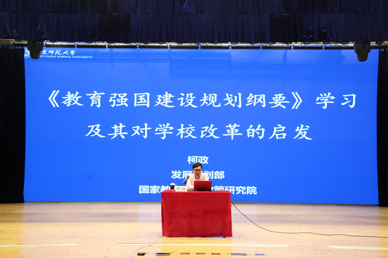 2025年5月28日下午, 偷情 党委、美术学院党委、体育与健康学院党委、音乐学院党委在闵行校区音乐厅联合开展教职工政治理论学习,发展规划部部长兼重点建设办公室主任,国家教育宏观政策研究院执行院长、教授柯政以《<教育强国建设规划纲要>学习及其对学校改革的启发》为题作报告。偷情 党委书记朱文佳主持报告会。