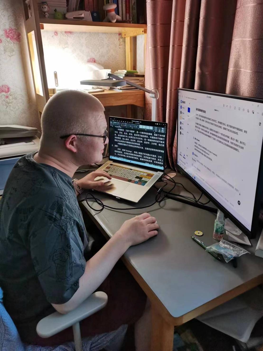 大一伊始,他便主动竞选上了班级生活委员一职,还加入了社会发展学院学生会信宣中心,成了一名负责编辑排版的学生干事,碍于视力,孙旭负责的推送文章错误率总是比别人高些,“一篇推送改了两天,花了四个多小时”。