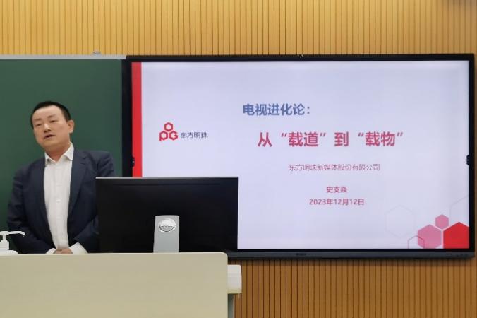 1212日下午,上海东方明珠新媒体股份有限公司高级副总裁、党委委员;兼东方有线网络有限公司党委书记、董事长,上海文广互动电视有限公司董事长;校友史支焱从电视的演进历程分析电视的颠覆性特征,讲述电视从信息传播与娱乐教化进化为“容载万物”的平台化载体的过程。本次讲座是2023-2024学年秋季学期“创意经济与传播专题讲座系列”的第六讲。
