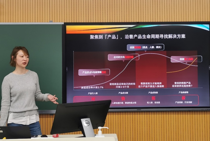 提问环节,针对同学们关于品牌投放形式的困惑,张雯漪表示,在目前经济形势下,品牌更多地投入到线上传播中。关于进入大厂工作的必备素养,张雯漪指出,大厂招聘的多轮面试会分别考察大家的团队协作能力、逻辑思维能力、英语能力和人格魅力,并鼓励大家进行框架型思考,培养逻辑分析能力。