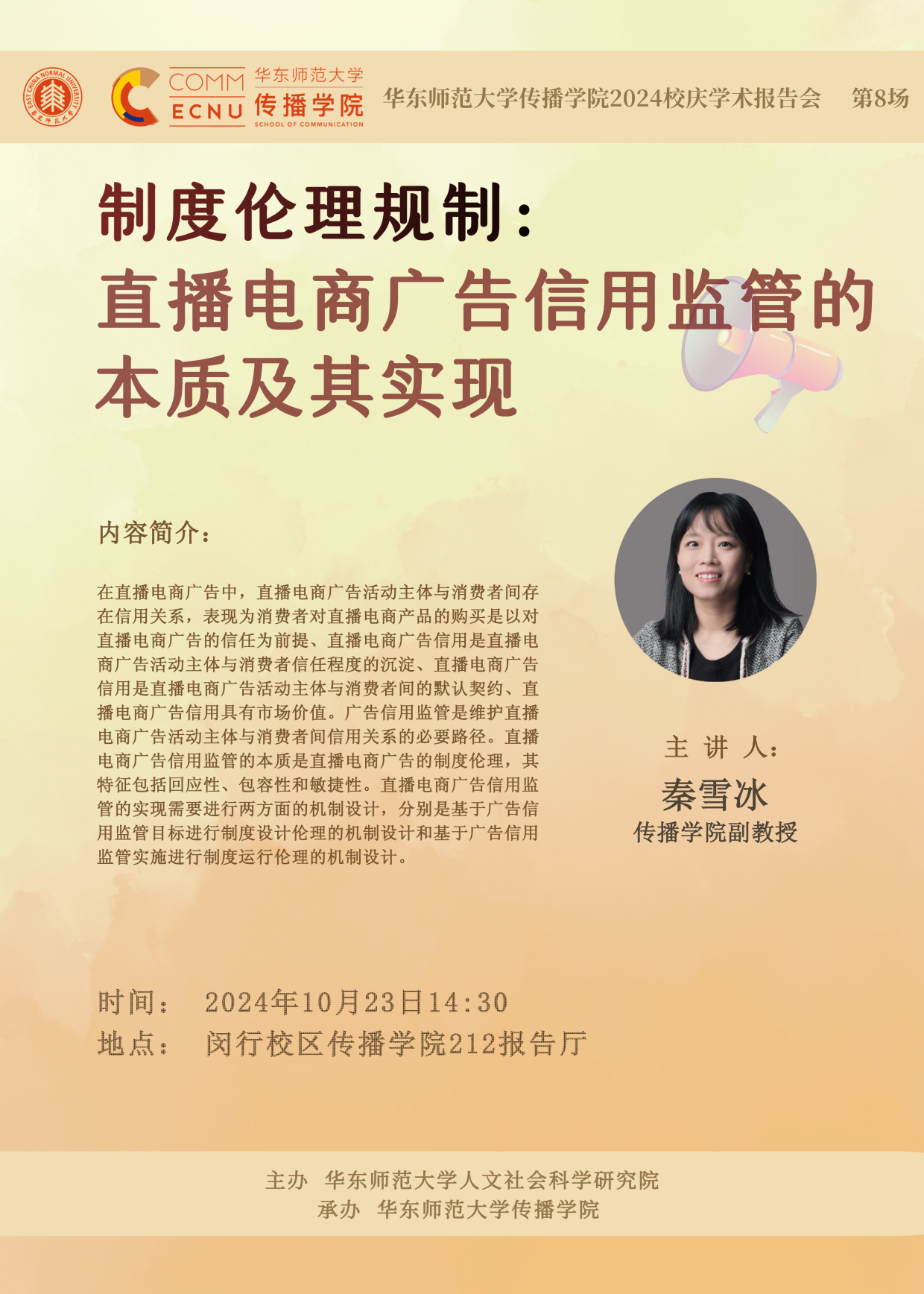 在直播电商广告中,直播电商广告活动主体与消费者间存在信用关系,表现为消费者对直播电商产品的购买是以对直播电商广告的信任为前提、直播电商广告信用是直播电商广告活动主体与消费者信任程度的沉淀、直播电商广告信用是直播电商广告活动主体与消费者间的默认契约、直播电商广告信用具有市场价值。广告信用监管是维护直播电商广告活动主体与消费者间信用关系的必要路径。直播电商广告信用监管的本质是直播电商广告的制度伦理,其特征包括回应性、包容性和敏捷性。直播电商广告信用监管的实现需要进行两方面的机制设计,分别是基于广告信用监管目标进行制度设计伦理的机制设计和基于广告信用监管实施进行制度运行伦理的机制设计。