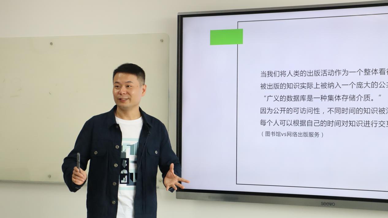 讲座伊始,于文用浙江大学黄旦教授在所著文章中的一句话作为引入——“出版‘是传播的一种,但出版不可被传播化……把传播出版化,才有自己的存身之本立足之地’”,借此向同学们明确出版学研究当有其“特定性”“边界”。