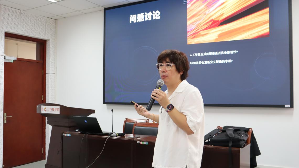 最后,刘老师与同学们探讨了人工智能生成影像是否具备原创性,及其内容生成是否重新定义影像的本质的思考。他强调,人工智能将继续在电影制作和理论中发挥越来越重要的作用,它将使电影的创作和观看更加智能化和个性化,并推动电影理论的进一步发展。