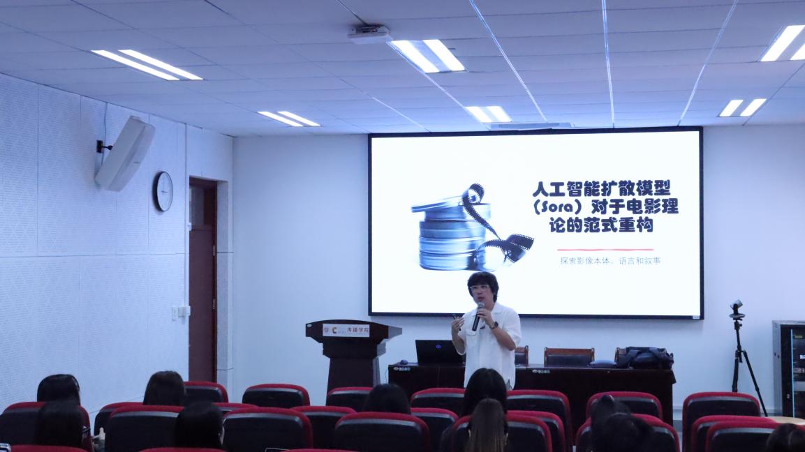 讲座伊始,刘弢老师首先回顾了电影技术的发展史,强调了技术革新对电影理论范式的影响。他指出,从默片到数字电影,再到如今的人工智能大模型,影像本体和本质发生了根本性的变化。而Sora模型的出现,不仅改变了影像的生产方式,也对电影的语言和叙事方式提出了新的挑战。