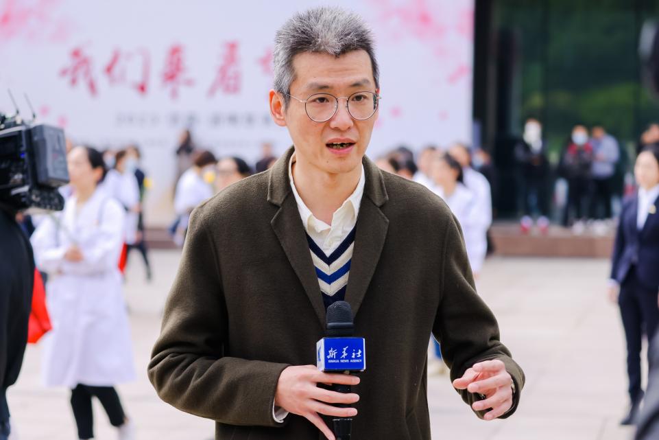 2023年4月5日,潘旭在龙华烈士陵园进行清明节报道