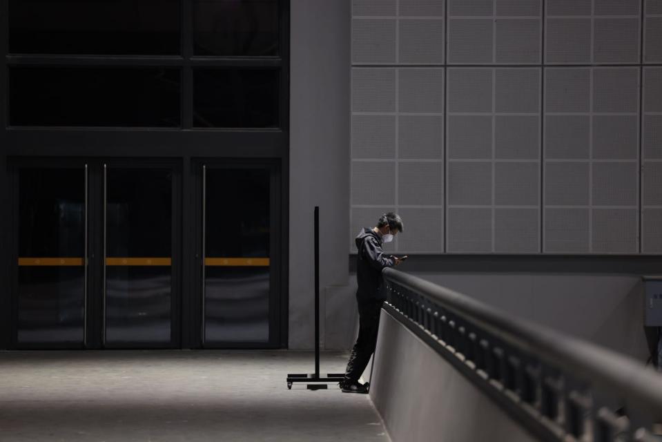 大上海保卫战期间,潘旭在“四叶草”三号馆二楼等候方舱医院开舱