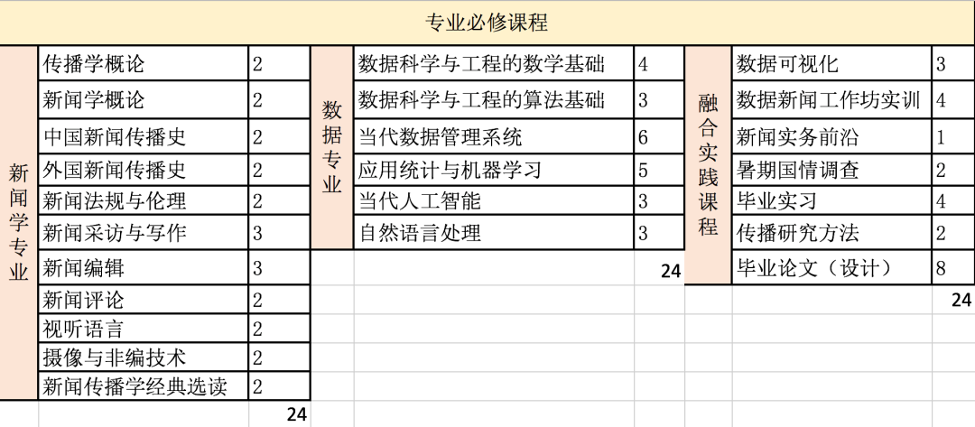 共72学分,联合打造“融合实践课程”24学分。