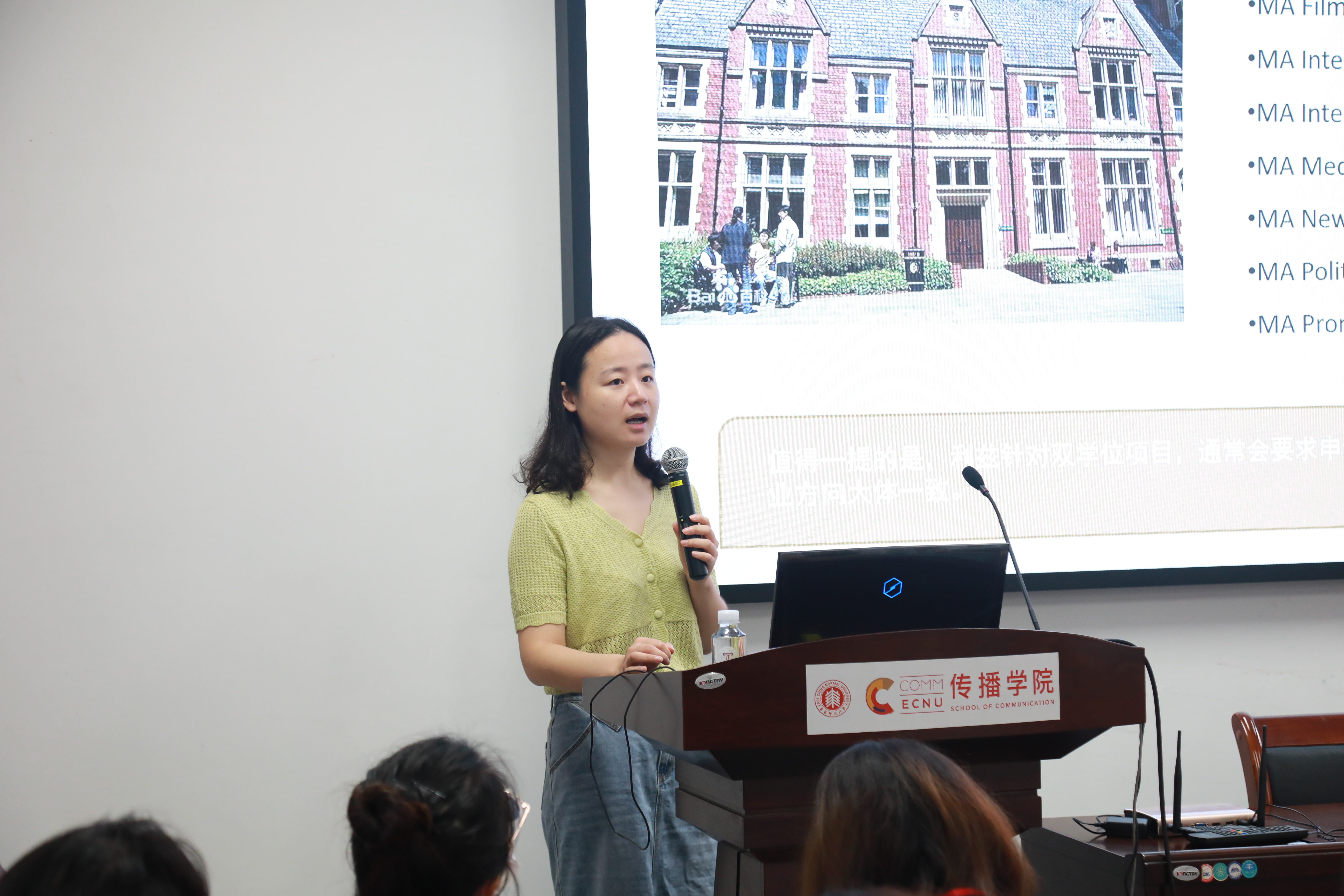 接下来,吉思琪老师重点介绍了院系层面的多元化交流项目,涉及到与英国、中国香港、中国台湾等多所境外优秀大学合作的双学位培养项目和短期交流项目。她还详细介绍了偷情 各合作院校的可选专业方向及录取条件,并建议同学们尽早着手准备。