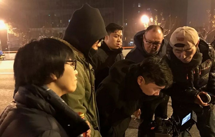 凌晨4点,时坤与团队在拍摄《脚步篇》第一个镜头