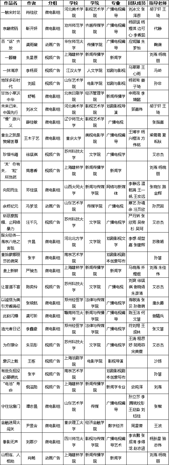 第十八届上海大学生电视节视频广告大赛以公益广告为命题,2025年7月25日至9月15日征集参赛作品,共征集来自全国47所高校报送的333件作品。经组委会慎重筛选,入围评审作品数量共197件。经过三轮评审,有3件作品获得一等奖、15件作品获得二等奖、30件作品获得三等奖、56件作品获得优秀奖。为保证评审的公平、公开、公正,现将评审团和获奖名单公布如下。