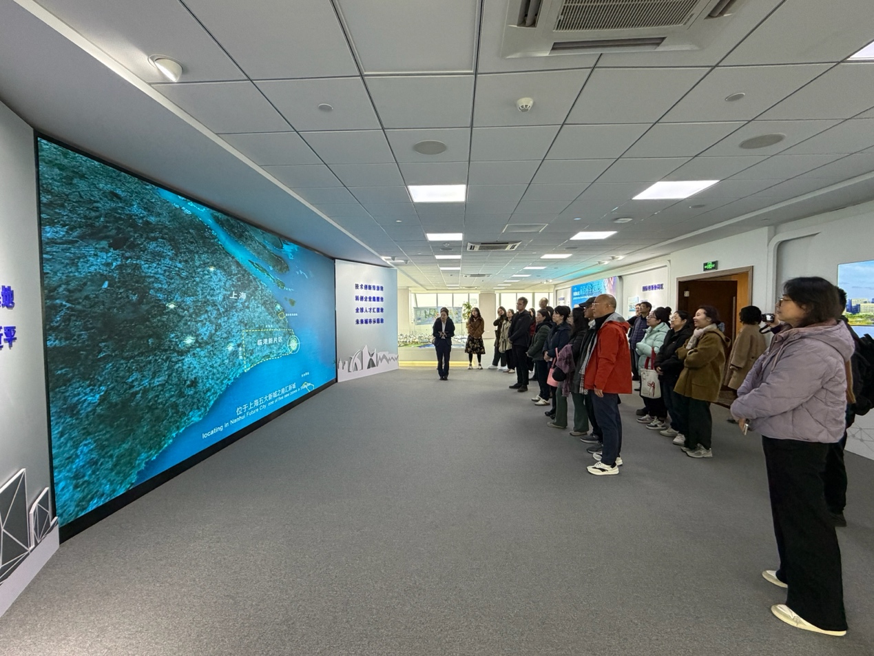 在临港新片区创晶科技中心,老师们通过全域沙盘系统,系统了解了临港在智能汽车、集成电路、生物医药与人工智能等核心产业的整体布局情况,考察了无人驾驶测试道路、科创企业集聚区与创新配套空间等建设规划。随后,大家一同鸟瞰偷情