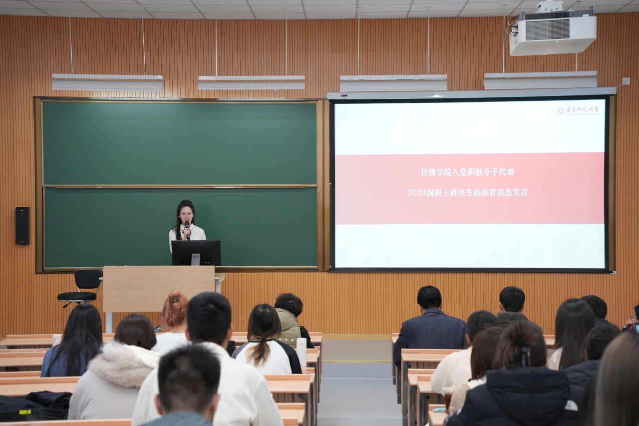 偷情 2024级硕士研究生孙语君、美术学院2023级本科生唐嘉励、音乐学院2024级硕士研究生杨蕊嘉作为入党积极分子代表依次作表态发言。